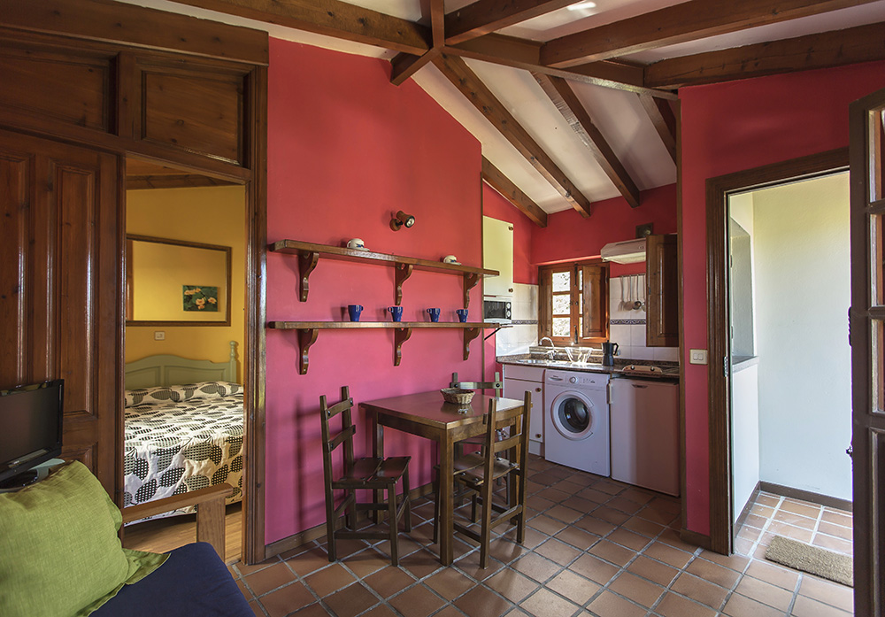 Toda la edificación, contruida sobre una antigua casa asturiana, dividida en apartamentos independientes con salida directa al jardín, se concentra en una finca cerrada de unos 5000 m2, de uso privado, muy cerca de varias playas naturales que aún se conservan de la zona, como la que da el nombre al establecimiento y que está situada en el mismo pueblo.